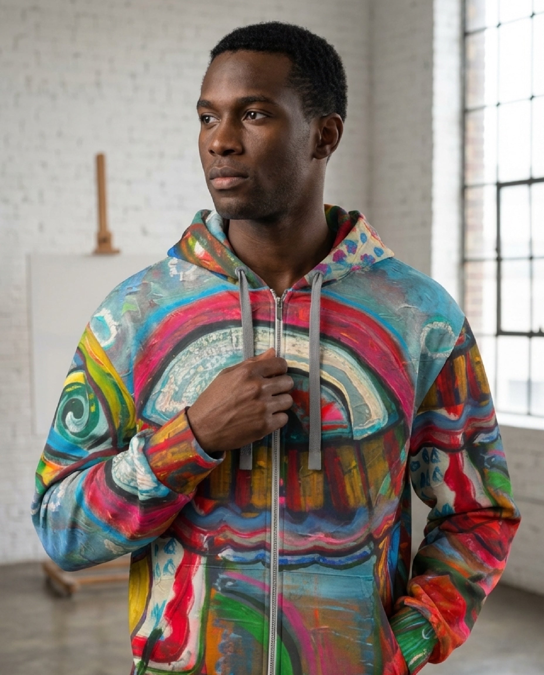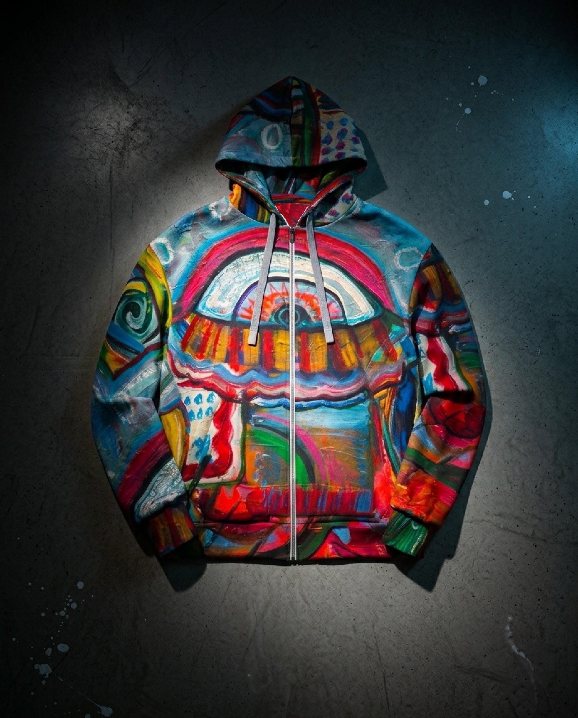 This garment features a translated image of Who Would’ve Thought, an original painting by DrainedEye. The work reflects a moment of internal recognition — where expectation dissolves and clarity emerges. Carried from canvas into wearable form, the piece extends that moment into daily life, allowing meaning to surface through experience rather than explanation.